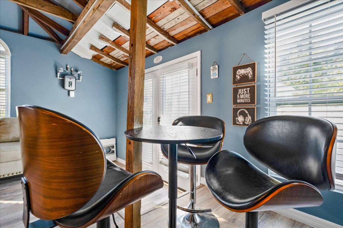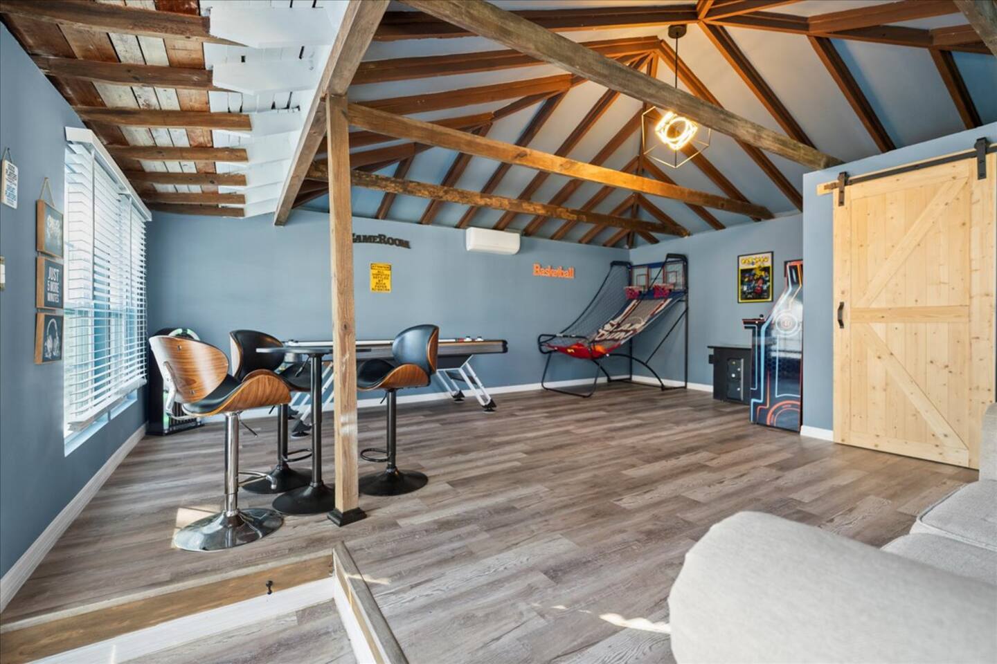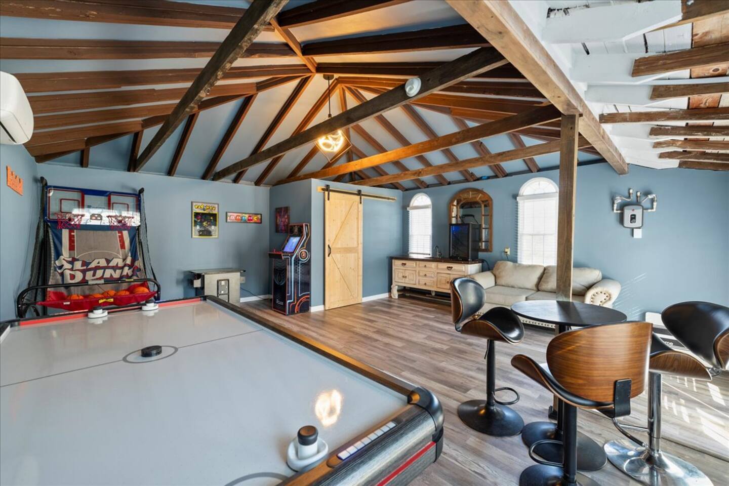 The entire home is yours to enjoy during your stay — from the bedrooms and sunroom to the backyard fire pit and classic front porch. Included is a detached climate controlled building with 450 sq. ft. game room and family hang out!
