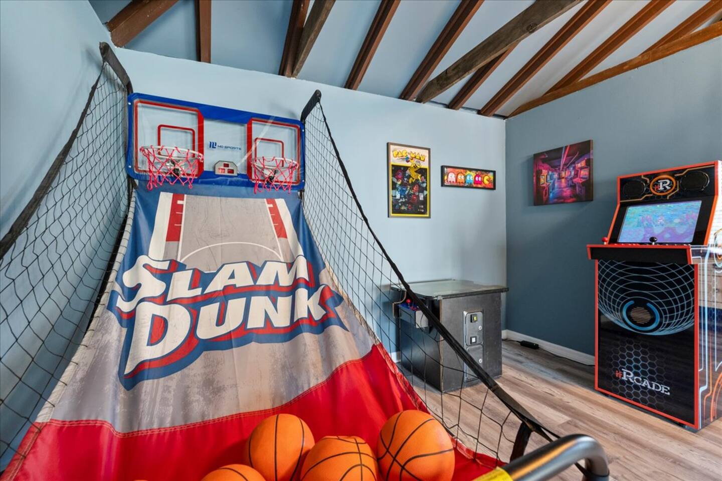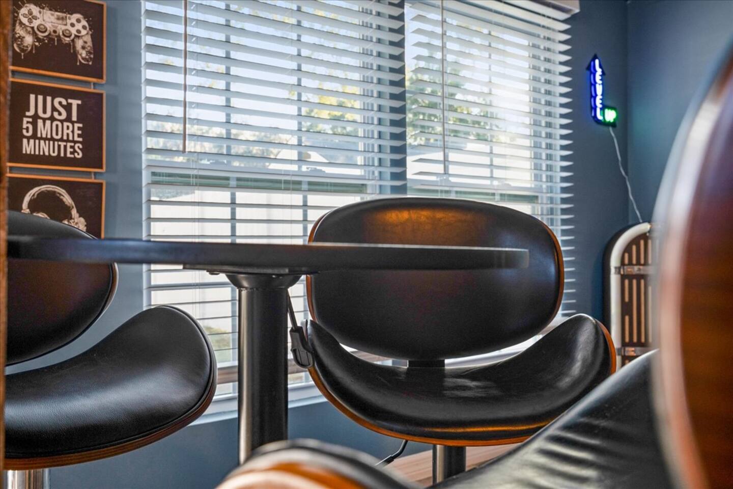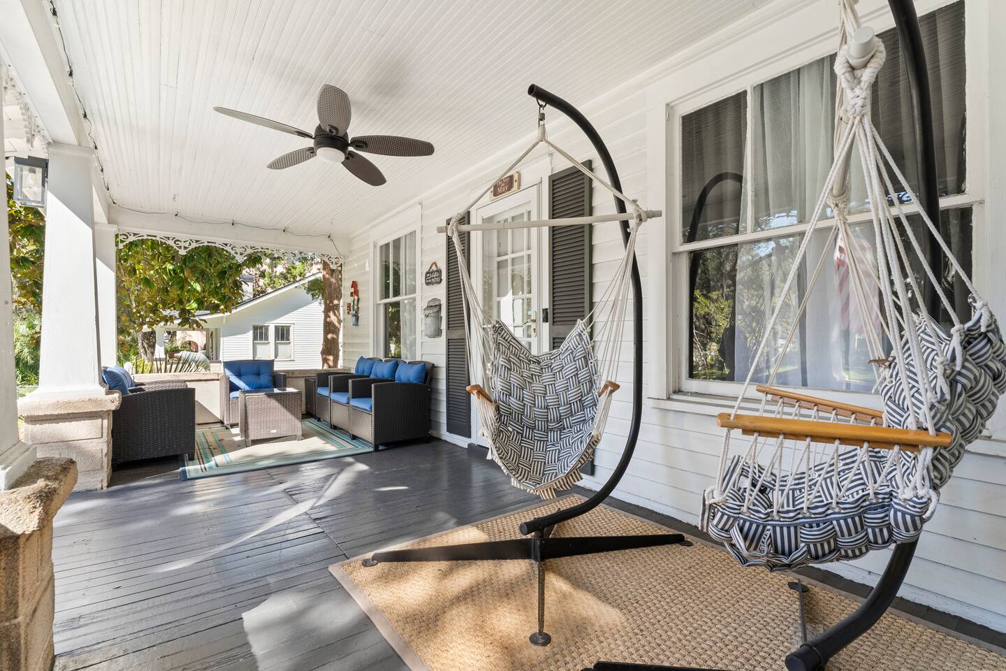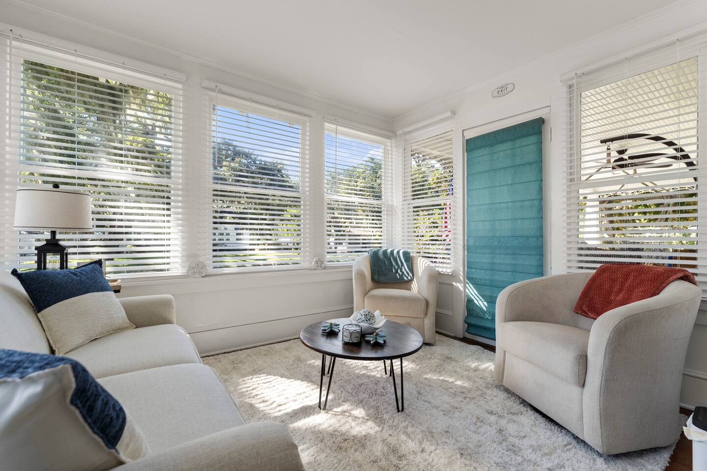 The entire home is yours to enjoy during your stay — from the bedrooms and sunroom to the backyard fire pit and classic front porch. Included is a detached climate controlled building with 450 sq. ft. game room and family hang out!