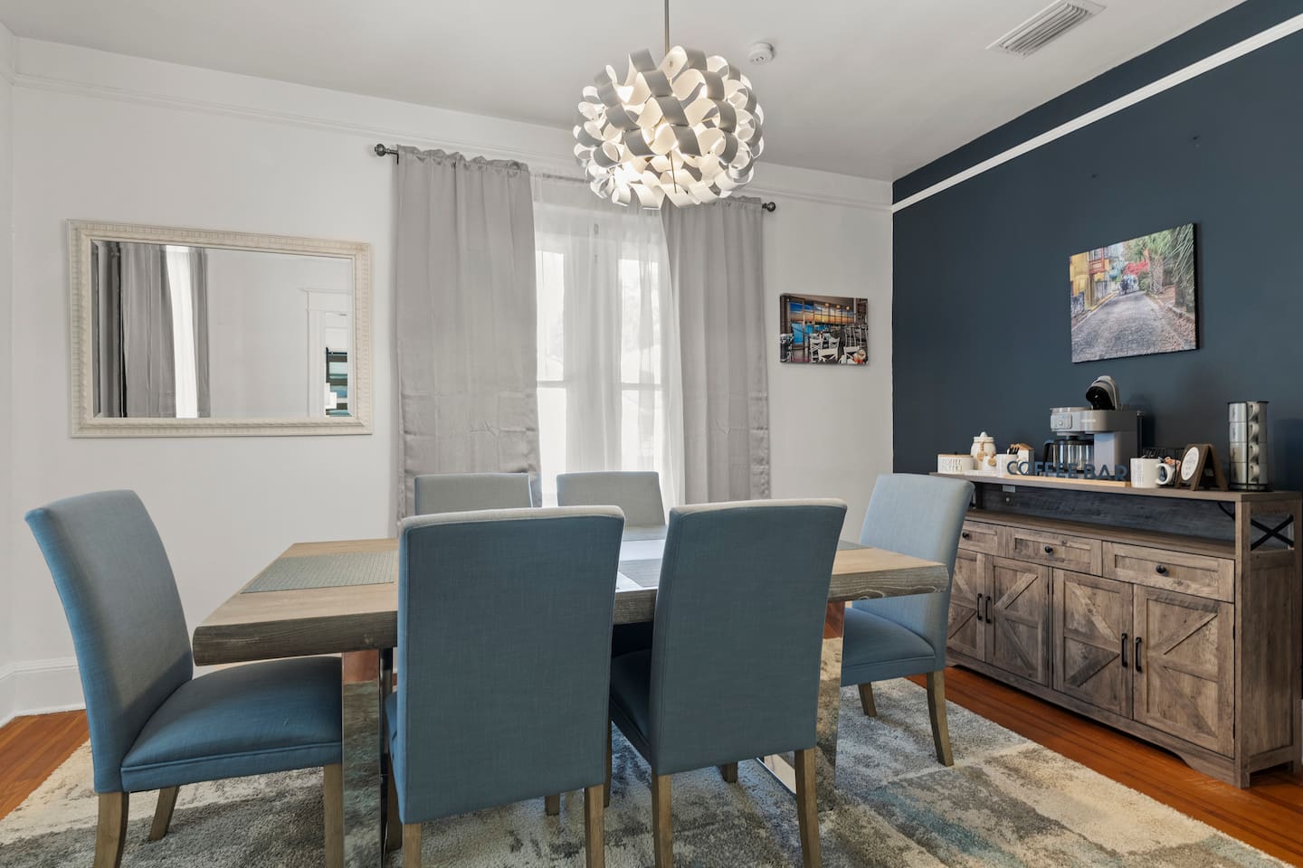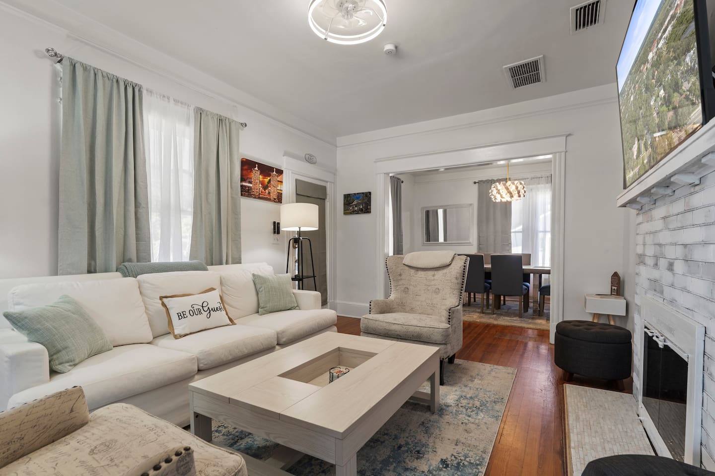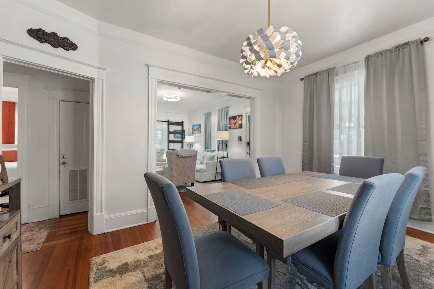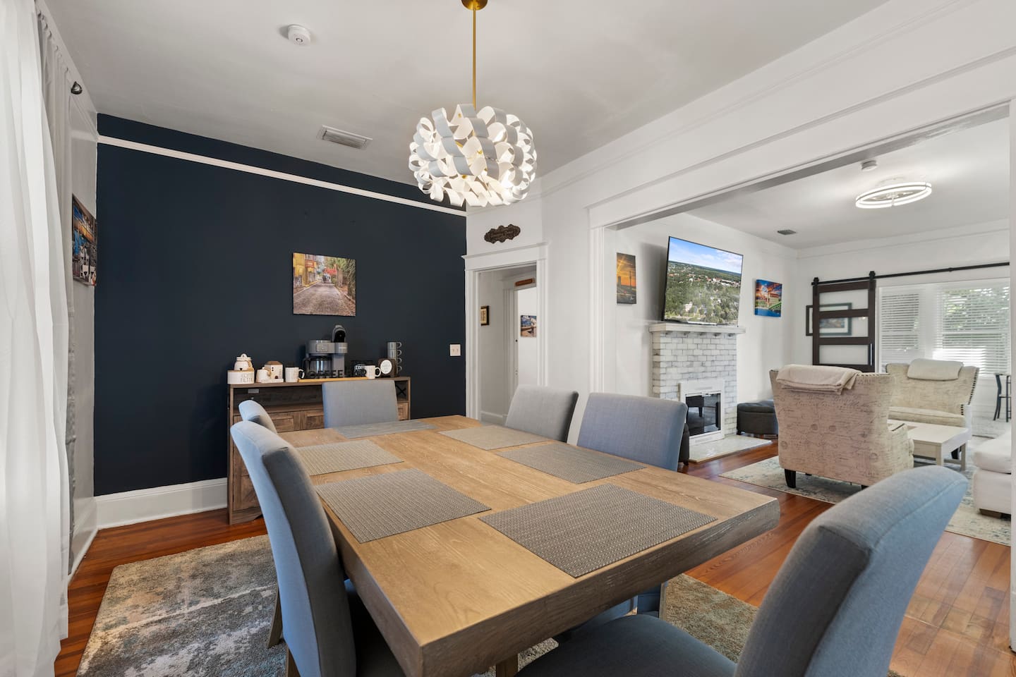 Beautiful Airbnb, with plenty of room for a large family to spread out, and equipped with all your basic needs. Perfect location, just right outside the madness, with easy access to downtown. We had fun looking at all the cute decor throughout and enjoyed playing the games provided. We spent lots of time sitting on the awesome front porch and doing s’mores out back with the fun fire pit setup. Very clean, comfy, great communication with any recommendations needed. We would definitely return!!!