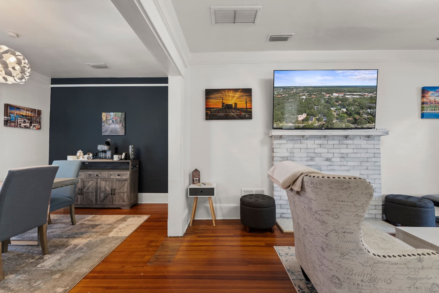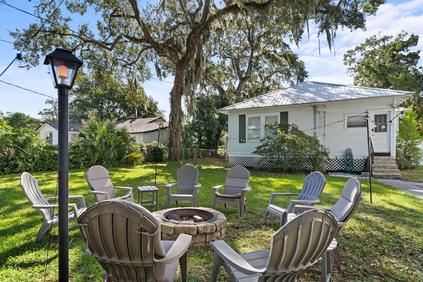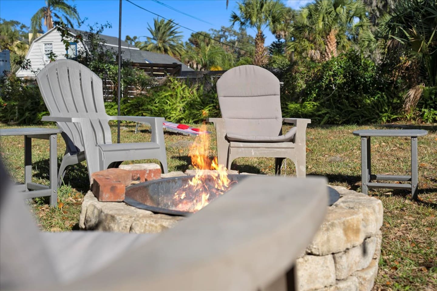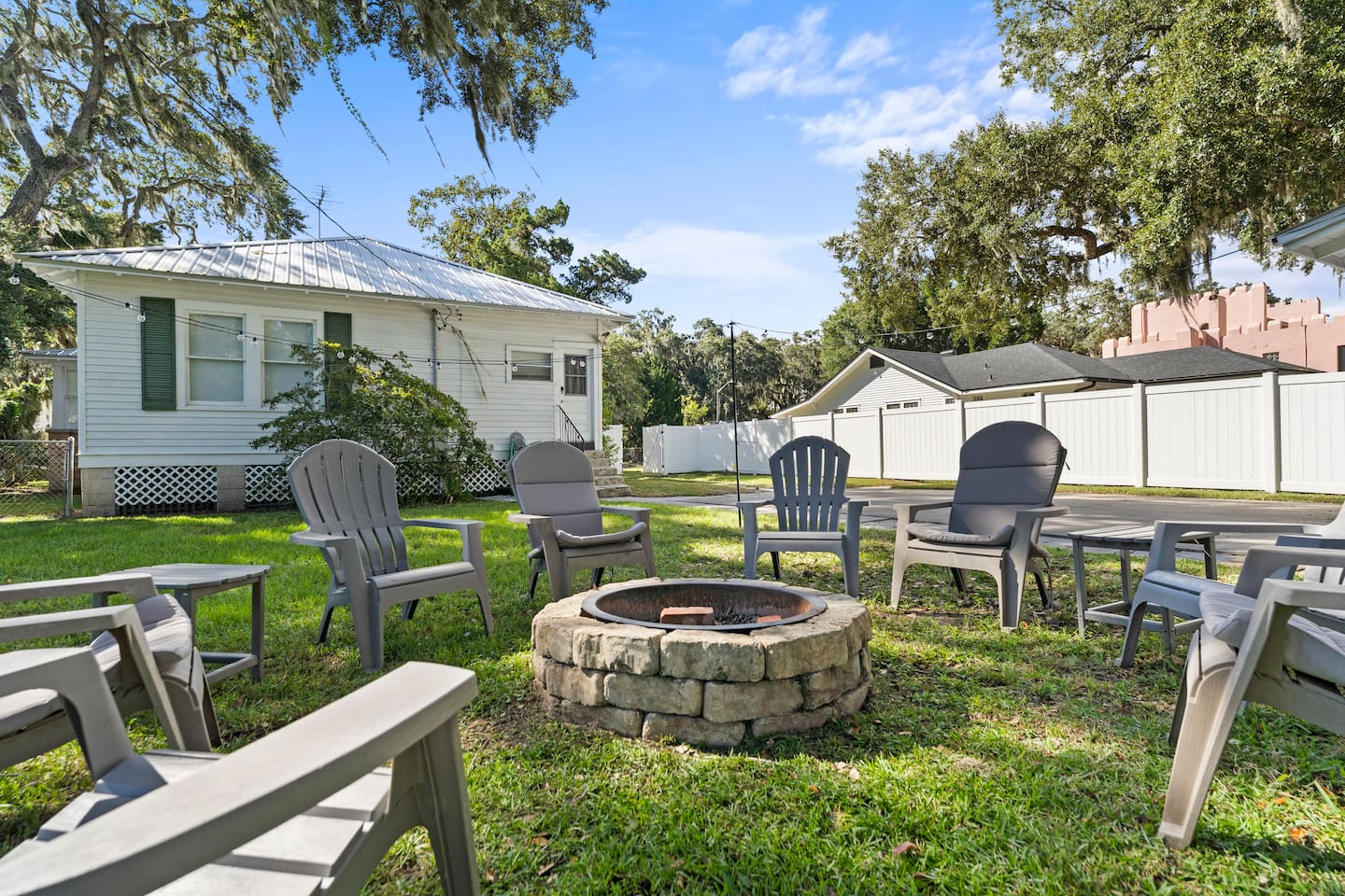 Welcome to The Stay on May your inviting historic single-level home. This thoughtfully designed 100 year old retreat offers a private fenced backyard, fire pit, and 450 sq ft. game room with curated local art inspired by St. Augustine ensuring a comfortable and memorable stay for families, couples, or friends.