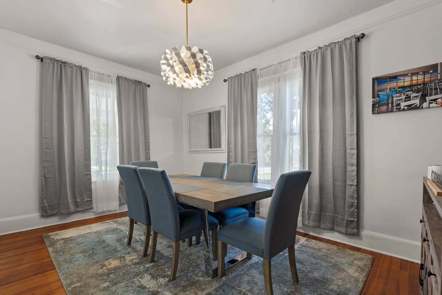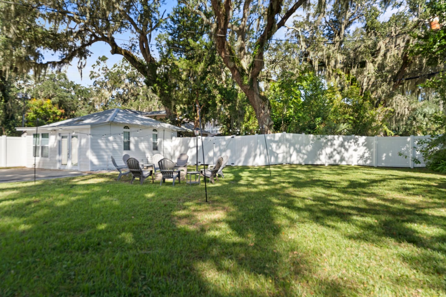 ⭑Master Bedroom:⭑ ✔ Queen bed with premium bedding, extra pillows & blankets ✔ Full closet, dresser, and decorative curtains ✔ SmartTV for personalized entertainment ⭑Second Bedroom:⭑ ✔ Queen bed with premium bedding, extra pillows & blankets ✔ Full closet, dresser, and decorative curtains ✔ SmartTV for personalized entertainment ⭑Third Bedroom:⭑ ✔ Queen bed with premium bedding, extra pillows & blankets ✔ Full closet, dresser, and decorative curtains ✔ SmartTV for personalized entertainment ⭑The Sunroom:⭑ ✔ Queen bed with premium bedding, extra pillows & blankets ✔ A quiet, peaceful space with soft natural light ✔ Board games and activities available for fun, downtime, or rainy days ⭑Living Room:⭑ ✔ Bright, open-concept space with cozy seating ✔ Smart TV with top streaming apps to connect and decorative curtains ✔ Stylish décor with a convenient charging station ⭑Kitchen and Dining Area:⭑ ✔ Fully equipped kitchen with refrigerator, freezer, electric stove, single oven, microwave ✔ Coffee maker (drip & Keurig), toaster, blender ✔ Cooking basics: pots, pans, baking sheet, oil, salt & pepper ✔ Dishes, silverware, bowls, plates, cups ✔ Dining table with seating for 6 ⭑Bathrooms:⭑ ✔ Two full bathrooms with fresh towels and complimentary toiletries ✔ Hair dryer and starter bath kit provided ⭑Outdoor Space:⭑ ✔ Fully fenced backyard with open grassy area ✔ Fire pit, outdoor furniture, and hammocks ✔ Private porch for morning coffee or a night cap ⭑Additional Amenities:⭑ ✔ High-speed Wi-Fi ✔ Dedicated workspace for remote work ✔ In-unit washer & dryer, iron, and ironing board ⭑Safety and Security:⭑ ✔ Smoke detector, carbon monoxide alarm, fire extinguisher, and first aid kit ✔ Private entrance and keypad self check-in ⭑Entertainment and Connectivity:⭑ ✔ Smart TVs in every room to connect streaming services ✔ High-speed internet for streaming and work ⭑Heating and Cooling:⭑ ✔ Central air conditioning and heating for year-round comfort ⭑Parking and Facilities:⭑ ✔ Free parking on premises ✔ Single-level home with no stairs ⭑Services:⭑ ✔ Self check-in with keypad and door code ✔ Essentials kit: towels, linens, soap, toilet paper Your stay at The Stay on May promises relaxing comfort, unbeatable convenience, and a true taste of St. Augustine charm. Book now and start your historic adventure in style! ⭑Conclusion⭑ Experience the best of St. Augustine with a stay at The Stay on May. Reserve your dates today and enjoy comfort, privacy, and easy access to the city’s top attractions! About the Area Located in the heart of St. Augustine, just steps from historic sites, vibrant dining, and local shops. Nearby Attractions • Castillo de San Marcos (Fort) – 3 minutes • St. George Street – 5 minutes • Lightner Museum – 6 minutes • Flagler College – 6 minutes • Fountain of Youth – 2 minutes • Vilano Beach – 6 minutes • Anastasia State Park – 9 minutes • St. Augustine Beach – 12 minutes • St. Augustine Lighthouse – 8 minutes • Ripley’s Believe It or Not! – 4 minutes • Old Town Trolley Stop #1 – 3 minutes • Pirate & Treasure Museum – 4 minutes